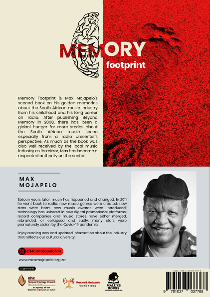 Memory Footprint is Max Mojapelo’s second book on his golden memories about the South African music industry from his childhood and his long career on radio. After publishing Beyond Memory in 2008, there has been a global hunger for more stories about the South African music scene especially from a radio presenter’s perspective. As much as the book was also well received by the local music industry as its mirror, Max has become a respected authority on the sector.